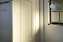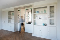 De Kamer En Suite Classic heeft schuifdeuren die hoger zijn dan de kasten eromheen, met architraven om de kasten heen. Het glas in de classic variant kan worden geleverd als glas in lood of als blank glas. De Kamer En Suite Classic is naar wens in te delen.